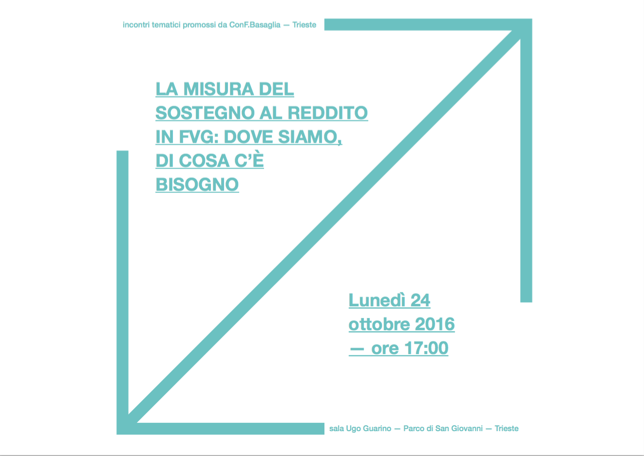Vi ricordiamo dell’incontro organizzato da ConF.Basaglia che si terrà lunedì 24 ottobre alle ore 17:00 presso la Sala Ugo Guarino in via Bottacin 4 (Parco di San Giovanni). Il tema dell’incontro è: “La misura del sostegno al reddito in Fvg: dove […]